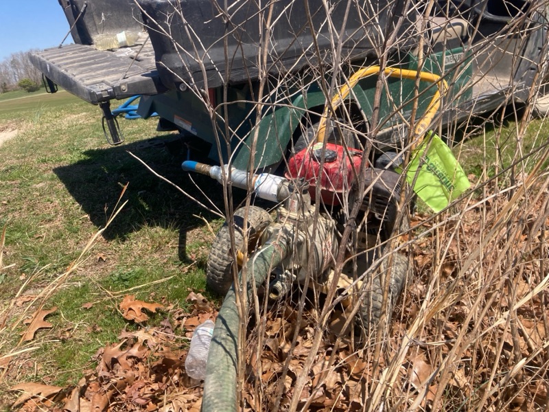 we got a new pump put in on the course and of course in April we had a heat wave come through and start burning up the greens.We had to figure out how to water the greens to keep them from burning up. We used a trash pump, made a hose hookup for the discharge and used the waters near the greens to water them.