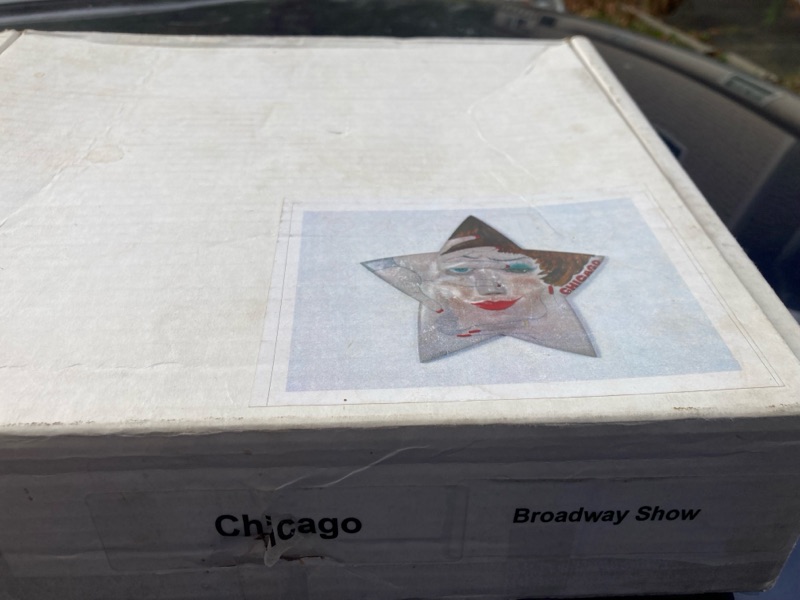 You can see the star is in the catalog and in this picture. It was painted by the original cast of Chicago. I had more pictures of the magazine but I lost them when I got a new phone. Tom Hanks did one Drew Barrymore and even Donald Trump. Well at work, every Christmas we work with a company called “Faces Of Autism”. There is a list of 30 tree themes to choose from and one happened to be Broadway. I jumped at the chance to turn the oddity into a commodity. My boss Henry and I took on the task together. They give you a $300 limit to spend on the tree that they will reimburse. Long story short we ended up paying $600 and each of us losing $150. We bought a broadway.com gift card for $300 and another $300 on decorations and the stanchions. My friend Joel works at a bar called Iggys in NYC and got us a gift card for his bar for drinks before or after the show. Plus, with the star the price of the tree was over $900