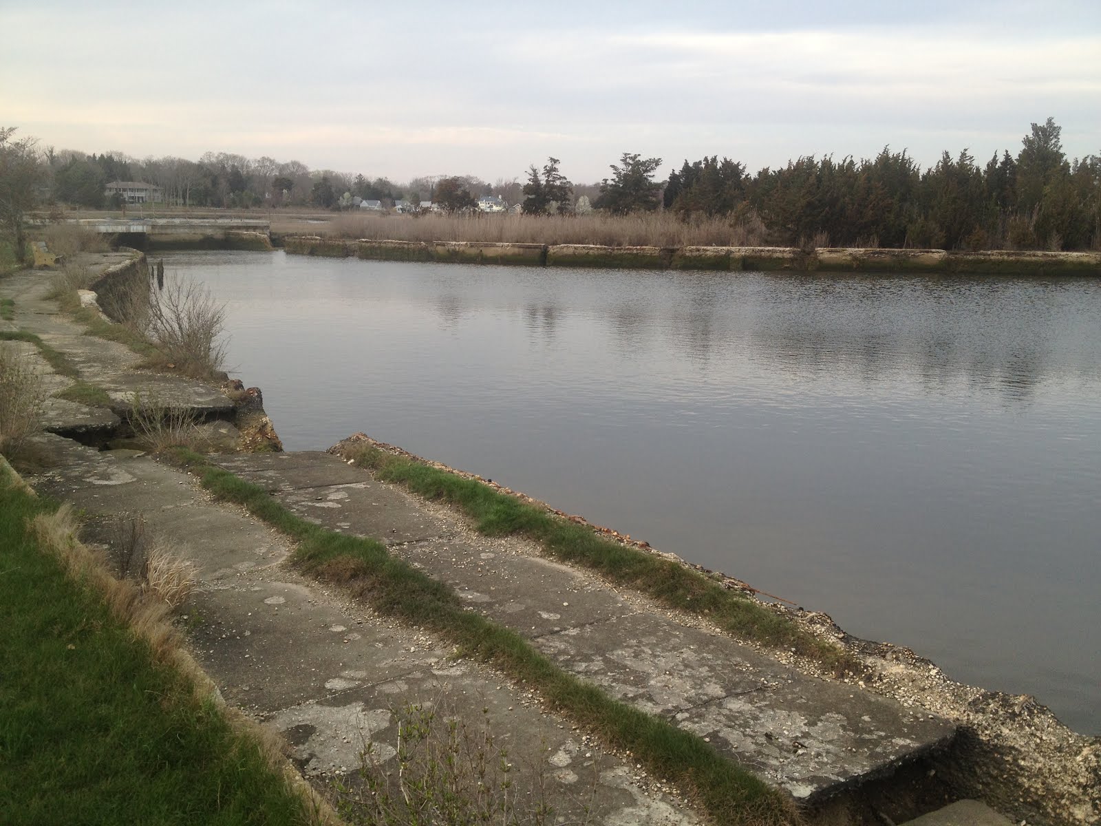 The area used to be a community pool or a private club for the Absecon Shores, Im not positive. I asked my mom for some info about it and she said in the 60s it was popular. She said she never went but a lot of her friends worked there. When the bay was at high tide they would open a gate using this lever to allow water into the pool area. When the pool was filled, they would close the gate.