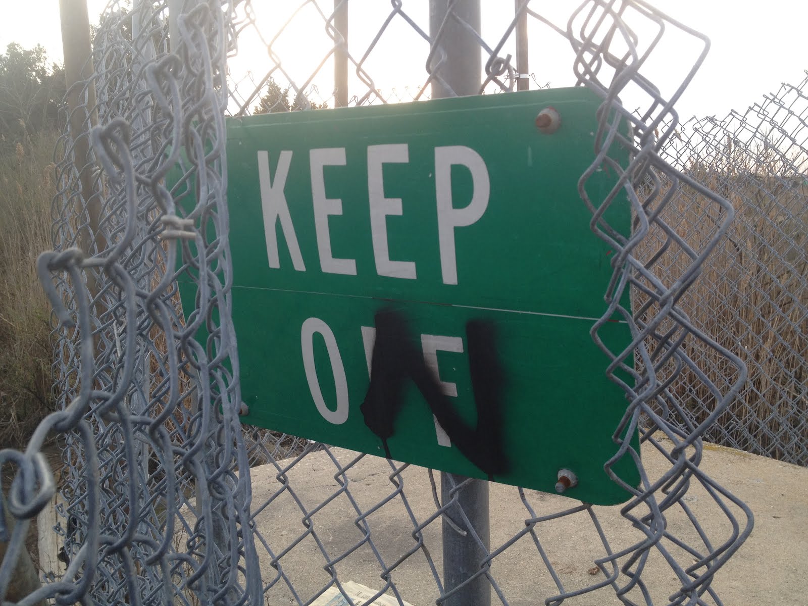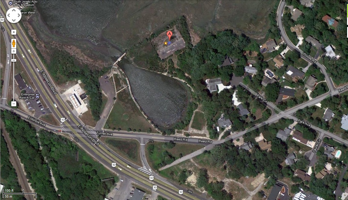 If you look at the google map, you will see a gas station with a parking lot behind it. This was the usual way in. You parked behind the gas station, then trecked through the marsh and across a concrete bridge to get to it.
