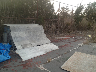 This post is about the "Absecon Skate Park". I never knew or even heard about this place. People that I went to school with supposedly built it. I was told they would grab any wood they could find and drag out to an abandon tennis court in the woods. Steve took me back there and I took some pictures of the area.